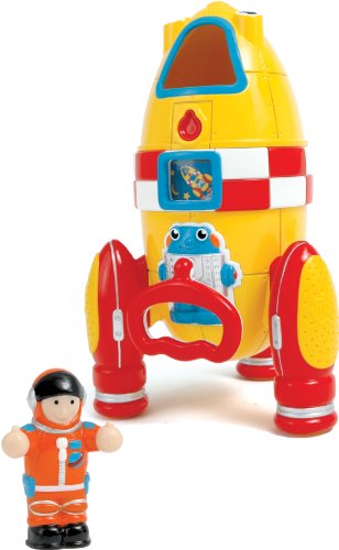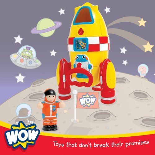 My name?s Ronnie Rocket and I?m a super-sonic space rocket ready for outer space adventures! Pull my pull-cord on Ziggy the robot to trigger my countdown: 5...4?3?2?1? TAKE OFF! Watch me vibrate as my numbers start to count down. My spaceman, Major Tom, revolves in his cockpit as the countdown is triggered, and then, BLAST OFF! My secret push button flips the cockpit open to reveal Major Tom in his high tech control panel. Known as: Big Ron In a nutshell: A charming live wire Likes: Exploring the stars and space missions Dislikes: Cloudy days and bad launch pads Likes to hang with: Pippa and LennyWOW Toys don't require any batteries and still have amazing functions and features to discover. WOW only use high grade materials and every toy is rigorously tested to make sure it is durable and safe.