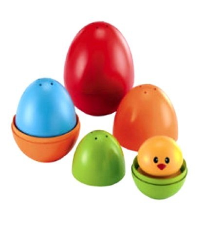 Contains 4 colourful eggs to nest and stack and 1 chick. These eggs can also be used as sprinklers in the bath and sand. Open to discover Encourage your baby to open up the first egg to find out what's inside. Open more eggs until they discover a sweet chick as a reward. Cheep cheep. Games with eggs Lay out the egg pieces so your baby can find the matching halves. Hide the chick in one of the eggs for your baby to find. Put the eggs into the bath for lots of fun pouring and sieving. Great for: Matching colours and sizes Little hands to build skill Making cheep-cheep noises Playing hide and seek with the chick Playing with sand or water too.