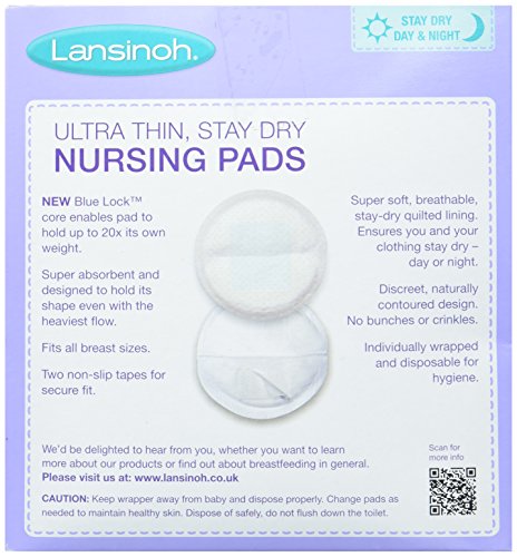 Lansinoh Disposable Nursing Pads have an ultra-thin but super-absorbent contour for a natural fit that won't show under clothing. The soft, stay-dry lining draws milk away from the skin and into the core of the pad where it is absorbed by a special polymer to prevent leakage. Featuring two non-slip adhesive tapes so that the pad stays in place, this is the only polymer style pad that keeps its shape when wet. The pads are hygienically wrapped for cleanliness and convenience - perfect to slip into your bag when out and about.