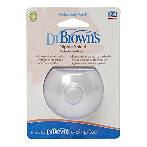 Dr Brown's Natural FlowThe Dr Brown's Nipple Shields feature a close-fitting design which?helps baby to latch on over?the?Nipple Shield during breastfeeding. They also help with latch on issues and flat/inverted nipples. They are made from a high grade silicone which is slightly stretchy to contour to mum?s breast. The nipple shields have a unique cut out shape at top allows baby?s nose to touch mum?s breast. They also help eliminate milk pooling to keep nipples dry, which promotes healing. Dishwasher safeMade from high grade silicone Box contains : 2 x Dr Brown's Nipple Shields