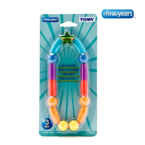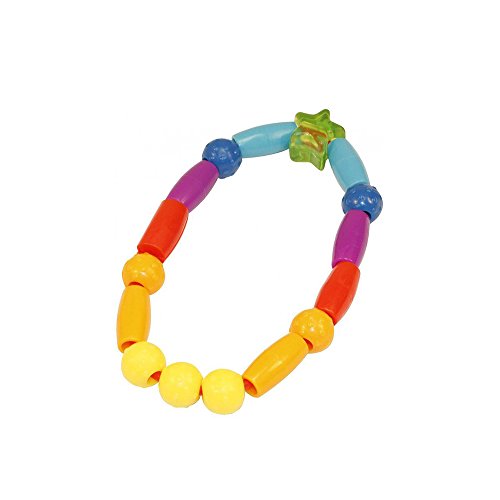 This teether is a classic! Brightly coloured beads that spin independently invite little fingers to touch and little mouths to bite. The ring-lock design allows beads to move freely, yet ensures that they can't break loose. Suitable for children from the age of 3 months and over.