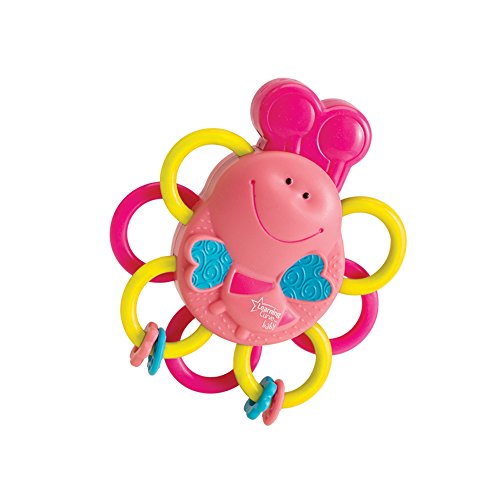 Offer baby complete teething relief with The First Years Buzzing Bee Massaging Teether. Baby's bite activates a massaging action, which will relieve and entertain. The tubular design is easy to hold and great for those hard-to-reach molars. The lightweight built-in handle shape makes it easy for little hands to manipulate. The massaging effect of the teether relieves sore gums when baby bites on bee antennae, aided by the lightweight tubular flower petals. Bright cheery colours will visual stimulate baby. Colours may vary between pink and yellow designs.