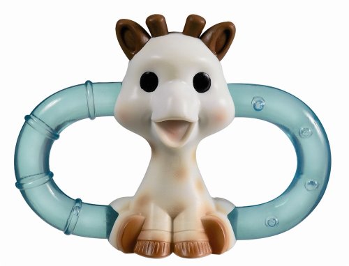 Once upon a time, a simple story...?The little giraffe was born on 25th May in year 1961...Saint Sophie's day.?In those days, the only animal toys available were farm animals or pet figures...?That is why one day in France a certain Monsieur Rampeau, who was an expert in transforming sap from the hevea tree using the rotational moulding of rubber as a toy-making concept, came up with the idea of designing a giraffe. Such an exotic wildlife figure would be a first on the market, and its size and shape would be ideal for a baby's small hands to grasp.?Sophie the Giraffe, who looked exactly the same then as she does today, went into production on Thursday 25th May.?She was an immediate success. Sophie quickly became a ?must have? in baby?s essentials. Designed to stimulate the senses and soothe teething gums, parents recognised right away the benefits of this little giraffe for their child.?By simple word of mouth, the little giraffe's fame spread.? Vulli, a company based in Rumilly in the Haute-Savoie region of France has created an extensive range of Sophie the Giraffe products to compliment the original toy and amuse and soothe babies from birth onwards. The Double Ice Bite teething ring has 2 water filled rings which can be chilled in the fridge to help soothe sore gums. The soft and chewy rings also double as handles making it easy for baby to hold. Both rings also have a textured surface to gently massage baby?s gums, with the reassuring face of Sophie the Giraffe to comfort baby. Suitable from 3 months onwards.
