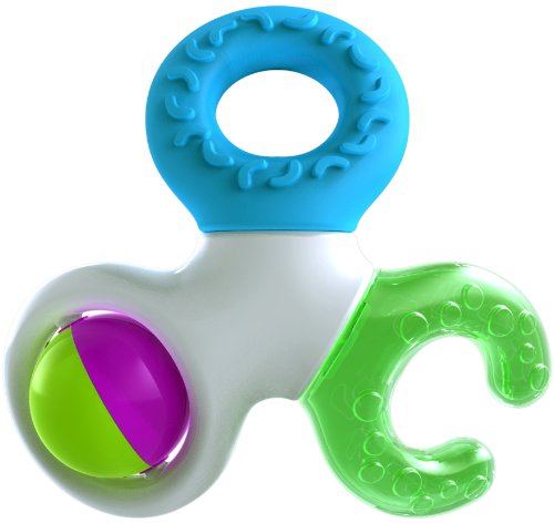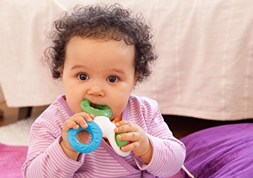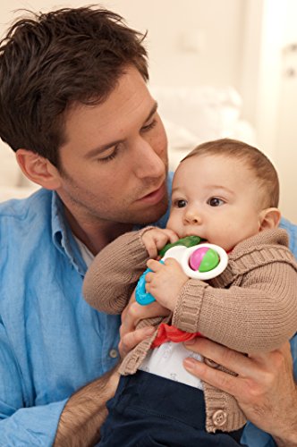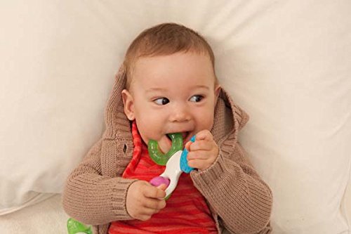 The smart MAM Bite and Play Teether was designed in conjunction with child development specialists to ease teething troubles and foster your baby's active perception skills by training the senses. The water-filled part of the MAM Bite and Play Teether cools and soothes gums; even molars can easily be reached thanks to the specially-designed shape. The teether is curved so that the middle is raised, making it easy to pick up, play with and chew on. The different surface structures and materials ease teething and make the teether exciting for babies. Recommended from five months of age. Free from BPA, phthalate and PVC.
