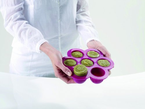 For freezing baby?s savoury and sweet meals and individual portions depending on baby?s appetite. Individual portions to be reheated in a bainmarie or microwave. Flexible material which makes it easy to remove the portions from the mould (high quality silicone, 100% platinum silicone). Adaptable, it can also be used as a cake mould. Multi portions is safe for use in the freezer, microwave and dishwasher. Holds 7 x 60 ml portions. 0 Percent bisphenol a in accordance with regulations in force. Available in green, purple and orange colour.