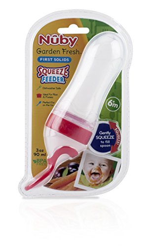 Because it's safe and easy, the Squeeze Feeder is great to use anywhere. The protective cover keeps food from leaking, making the Squeeze Feeder ideal for travel. Simply fill the feeder with the desired amount of baby food or cereal, and give the soft silicone feeder a gentle squeeze! The baby food is allowed to pass through a hole in the spoon's neck and into the bowl of the spoon. Feeding time has never been so easy! Nuby's Squeeze Feeder is also great for milk and formula. Note: Some foods like carrots and sweet potatoes may stain the Squeeze Feeder, but this will not affect the use of the product. Suitable for babies from 6 months onwards. BPA Free. Nuby has a range of weaning products to help Mums prepare, store and feed baby.
