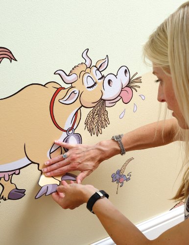 Transform a whole room into a farmyard scene in minutes with these easy peel and stick room decorations. Each wall sticker kit contains 4 huge sheets filled with oversize vinyl stickers. Peel and position each removable sticker wherever you like to create your own fantastic mural. Change the look whenever you like - quickly, easily and without making any mess. It's as easy as Peel - Stick - Decorate.Quick to apply, cleanly removable, re-stickable splash-proof and washable. Simply peel each pre-cut sticker and apply to any clean, dry surface - walls, doors, furniture, bathrooms and more. The results are amazing, giving the affect of a hand painted mural.Thanks to a unique adhesive, the images can be moved from place to place without damaging the surfaces, so when you are ready for a new look, just peel off the stickers and refresh with a new FunToSee theme. Ideal for home, schools, creches, hospitals, kids' clubs and more. Kit includes 72 wall stickers, including (cms in height) Mother Sheep and Lambs (11 - 16cm), Pony (37.5cm), Dog and Hen Coop (48cm), Donkey and Stable (90cm), Wheat Sack (15.7cm), Ruffled Rooster (17.5cm), Mother Hen and chicks (5cm - 19.5cm), pond (31cm), 2 Geese ( 8cm - 15cm), Kittens and Milk (25 cm), Pig and Piglets (15.5cm - 27cm), Goat and Duckling (17.5cm), Cow and Calf (23cm - 39cm) and many more. All this in a lovely presentation box with carry handle. You can even copy our layout design identically from the box. Our stickers are designed, manufactured and dispatched from the UK, and make the perfect present.