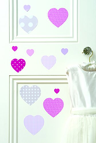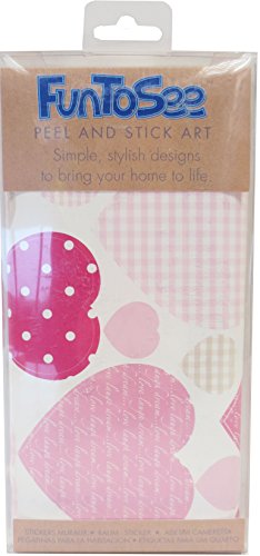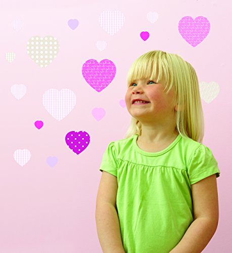 Add a tasteful touch of colour to walls or furniture in a little girl's bedroom. These high quality, repositionable stickers are an affordable way to be creative without the hassle. The pink patterned love hearts complement other girly bedding and room accessories. Ideal for creating borders or a fun feature wall. Use during Valentine's to show you're love for your mum or partner. Each pack contains 2 pre-cut sheets of splash-proof, vinyl stickers.Change the look whenever you like - quickly and easily without making any mess. Easy to apply and cleanly removable, simply peel each sticker and apply to a clean dry surface - walls, doors, furniture, bathrooms and more. No glue, tape, pins or paint required.Thanks to a unique adhesive, the stickers can be moved from place to place without damaging the surfaces. Ideal for home, schools, cr?ches, hospitals, kids' clubs, art and more.Pack contains 44 sweetheart stickers in pink, dot and gingham patterns. Sizes from 2.5cm to 9.5cm. Our stickers are designed, manufactured and dispatched from the UK and also make the perfect present.