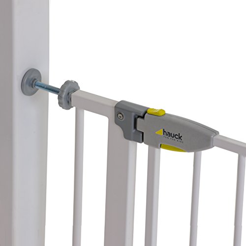 The Squeeze Handle Pressure Fit Safety Gate from Hauck is an easy fit solution requiring no DIY or drilling just simple adjusting of hand wheels to secure firmly in place. The gate is 76cm tall and will fit openings of 75 to 83cm or with the addition of the right extensions this can be increased to 120cm. The squeeze handle lock is safe for children but very easy for adults to use with one hand, perfect if your arms are full with your baby or child.