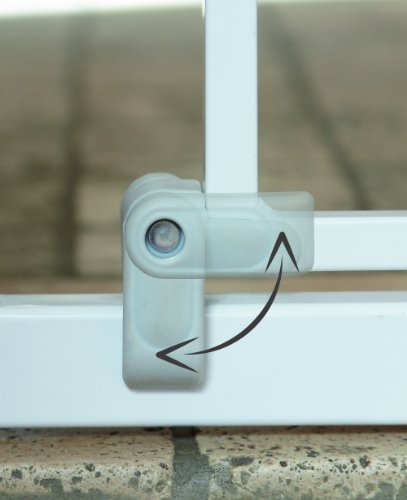 The strong U-shaped pressure fit gate features two-way opening and a double locking mechanism for added peace of mind. view larger