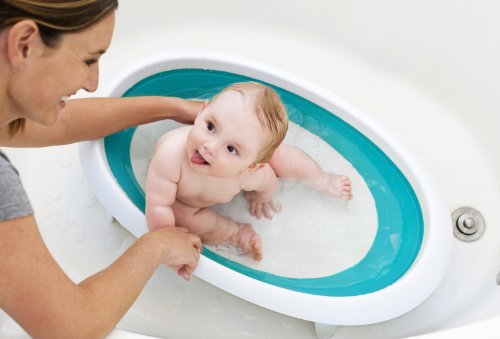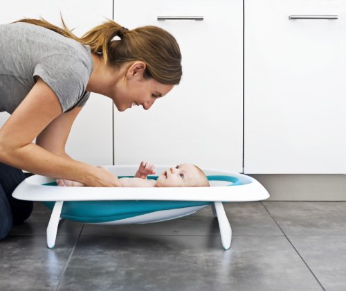 Sleek, smart, and made to support your growing baby in numerous ways, Naked is a great two-position collapsible baby bathtub. You can count on it from newborn to toddler. Recline it, expand it, drain it, collapse it, and hang it up to dry. The bathtub provides two support positions, for stages newborn to toddler; the recline position cradles newborns, which helps keep their head above water. The fully-expanded basin accommodates infants and toddlers, and it features a rotating support brace for quick and secure positioning. Drain the plug for quick, complete water drainage. BPA-free, phthalate-free, and PVC-free. Suitable for use from birth to 18 months of age. Dimensions: 18.25 x 33 x 6.5 inches (46.5 x 84 x 16.5 cm).