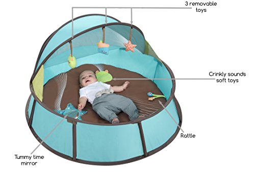 Babymoov is a French company attentive to parent's needs for more than 15 years and creates innovative products to support them during their moments of joy with their child. Thanks to this anti-UV babyni your little one will be protected against up to 99% of the harmful UVA and UVB rays, sand and wind. With the pop up system you can fold and unfold the babyni very quickly! Very light and practical you can bring the Babymoov babyni everywhere when you are on the go. Your baby will apreciate being protected in such a safe and large space (80*80*61 cm). 3 nice toys are included to entertain your little one! Babymoov has a lifetime warranty: please register your product within 2 months at www.service-babymoov.com. Terms and Conditions apply.