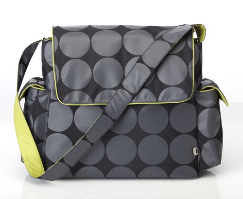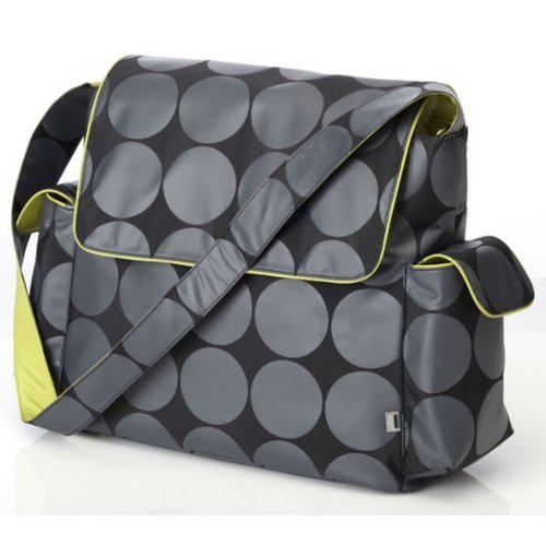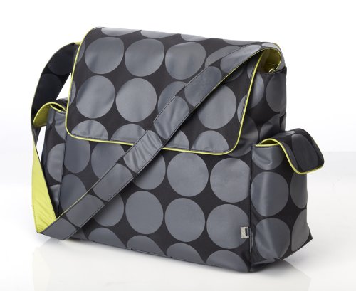OiOi Charcoal Dot Messenger Baby Changing Bag with Lime Lining and Accessories