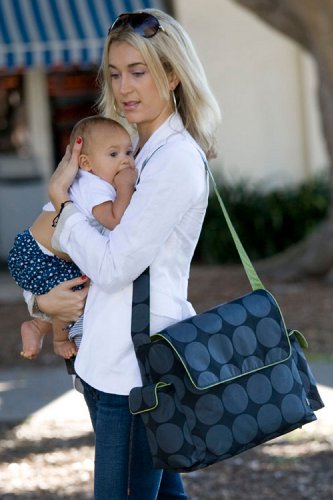 The distinctive and ever-popular OiOi Charcoal Dot Messenger bag, with lime interior, trim and accessories, including large change mat, insulated bottle holder, OiOi wipes case and pvc wet purse, is the essential baby changing bag for new Mums and Dads. OiOi?s stylish baby bags are the brainchild of Lisa Bennetts whose beautiful daughter Isabella, born in 1997, gave her the inspiration to create a label that would empower mothers and give them the confidence to look and feel amazing! OiOi bags have led the way since that time and are the original and essential style accessory loved by mums throughout the world. Original OiOi. Bags of Style.