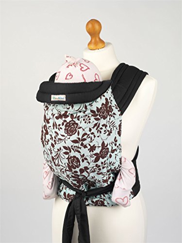 Using a Mei Tai sling is fantastic as you can carry your baby on your front or back, as you can see from my photos. The sling features a delicate, turquiose floral pattern, but can be reversed into plain black. Features: Reversible Machine washable Specifications: Waist Strap: 180cm Shoulder Straps: 150cm Weight approx.: ?1lb Load capacity max.: ?Up to 35lbs Material: Cotton This sling is incredibly?comfortable to wear, as well as for your baby to travel in! It is very soft and pliable, and moulds to you and your baby?s body much more easily than some of the more?expensive brands. The Mei Tai is incredibly easy to put on and take off, and full instructions on how to tie it in three positions, ?Front?, ?Back?, and ?Hip? will be sent with your sling. You can also watch our instructional videos below which show you how to tie and wear your new Mei Tai sling. ? The sling is suitable for babies from birth to 35lbs. The waist strap is 180cm in length and each shoulder strap is 150cm.