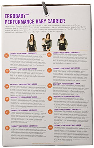 Adventurous. Breathable. Outgoing. For the active parent looking to take their baby along for the fun, the Ergobaby Performance Carrier features moisture-wicking mesh for ultimate breathability so both baby and parent stay cooler. Durable synthetic exterior makes for easy washing and quick drying. Tapered shoulder straps and padded waist strap ensure parents stay comfortable even on longer treks, either on the trail or at the mall. Adjustable shoulder and chest straps fit from 5' to 6'5" body height. Depending on body type, height range may differ. Waist belt extends from 30" to 54". Comfort contouring on shoulder straps; chest strap on slider for easy adjusting. Features an integrated sleep hood with elastic, adjusts in length for growth of baby (non-detachable).