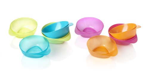 These bowls are a must buy for mums who like to feed on the go. One pack provides you with two bowls, a leak proof lid and feeding spoon. Our unique easy scoop triangular bowl helps baby to learn to self feed and as this bowl fits with our Magic Mat, keeping things in place means minimising mess and stress, great for you and your baby. Key Features: 2 bowls with leak proof lid and spoon Easy scoop triangular base Works well with 'Magic Mat' (sold separately) Ideal for travel BPA free Available in boys or girl colours.
