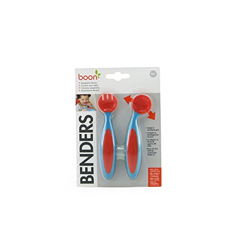 While your child is learning how to use utensils, Benders from Boon can be positioned to accommodate any grip in any direction, which means food arrives at its intended destination rather than a cheek or chin. With a simple touch, the spoon and fork heads can be positioned at different angles from the handle, meaning they can be adjusted to fit in with where the toddler holding them is at developmentally. New to self-feeding? Then angle the head sharply so food can be easily spooned into the mouth. More advanced? Then begin to straighten out the head position to help aid your child transition to regular utensils. Benders have soft, easy-grip handles and look great too, so children will be pleased to have these in front of them at the dinner table. Boon Benders are BPA-free, phthalate-free, and PVC-free, and suitable for use from 9 months of age.