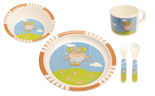 Playshoes Melamine Baby Dinner Feeding Set (Elephant Printed, 5 Pieces, Blue )