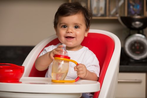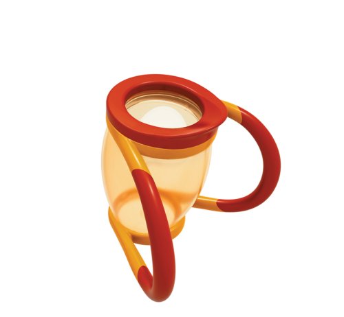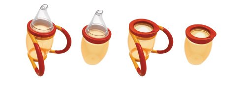 Because 4 little steps are easier than 1 big one: 1. Full weaning cup with teat and handles; 2. Weaning cup without handles; 3. Weaning cup with handles and sipper ring; 4. Proper cup without teat and handles but with sipper ring. Because parents don't like clutter, you only need one of our cups from baby right through to toddler. Because learning can be messy, our cup has a big chunky sipper ring to drink from. Because babies' wrists and arms have less control and their cup often misses their mouth, our cup leans forward at an angle to make drinking from it easier. Because feeding products are best kept squeaky clean, our cup can be taken apart easily and washed in the dishwasher or steriliser.