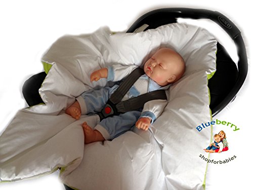 - Shell: 100% Cotton, Lining: 100% Cotton, Filling: Polyester, - VERY Cosy and COMFORTABLE, Designed for CAR SEAT (3 point harness) and CRIB