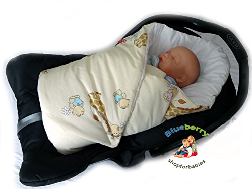 BlueberryShop Luxury Classic for CAR SEAT Swaddle Wrap Blanket Sleeping Bag for Newborn, baby shower GIFT Cotton 0-3m ( 0-3m ) ( 78 x 78 cm ) Cream Giraffe