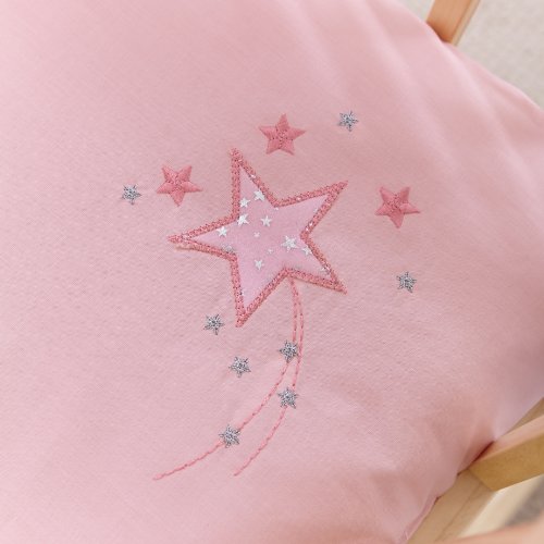 Keep your little one smiling whilst following these unique shooting stars. Our Starburst bedding sets have been beautiufully embroidered and lovingly manufactured in the UK. Made especially to keep your little one warm and snuggly for a good night sleep! The set is available in 4 different colours to suit your taste - White, Blue, Cream and Pink. This set comprises of a palm moses basket, mattress and dressing. All of our Starburst dressings are removable for washing at 40 degrees and the quilt has approx 4.0 tog. We have an extended range consisting of a Moses Baskets, Crib bedding and Cot Bed Sets.