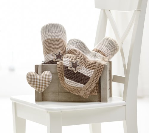 The Clair de Lune Pick 'n' Mix blanket is available in 3 colours - Natural, Blue and Pink. It comes with a delicate knitted motif and is machine washable for added flexibility at home. The size is 70cm x 90cm and is 100% cotton. The blanket matches beautiful with our character designs - ie Ahoy, Lottie & Squeek and My Dolly. Clair de Lune have been manufacturing nursery products in their Manchester based factory since 1943! We proud to offer a wide variety of baby bedding, moses baskets, stands, blankets and sheets.