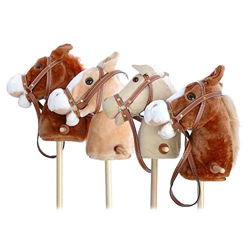 Pink Papaya | Stick horse - "Goldy" - Beige stick horse made of plush with blonde mane and with sound effects [並行輸入品]