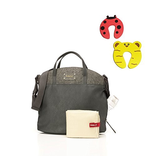 Babymel Grace PU Changing Bag in Grey/Felt With Changing Mat & Insulated Bottle Pocket Plus 1 Pair Of Door Stoppers by KATIES PLAYPEN? / BABY BEST BUYS