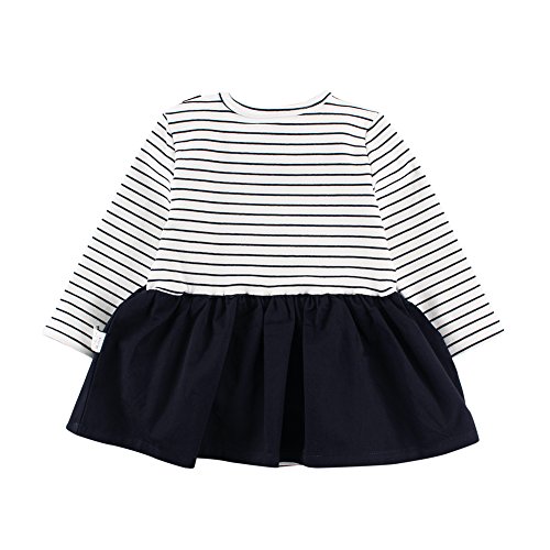 Baby Nest ベビー服 スカート付き ロンパース 長袖 ボーダー柄 女の子 赤ちゃん ワンピース ネイビー 9-12M