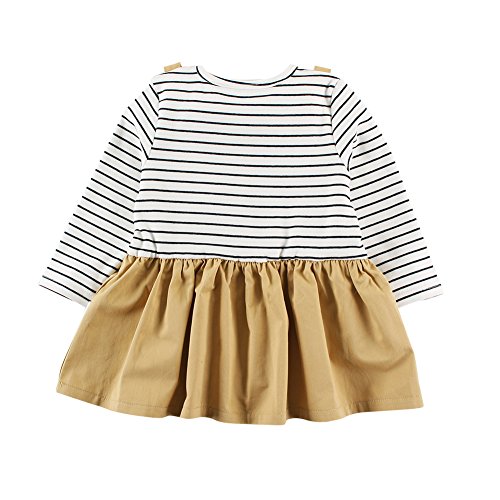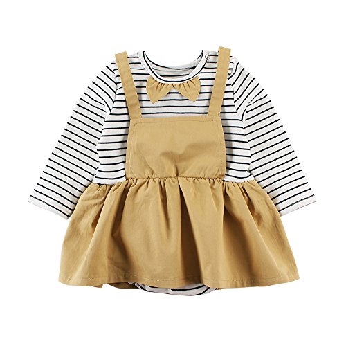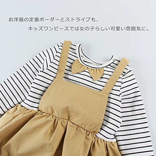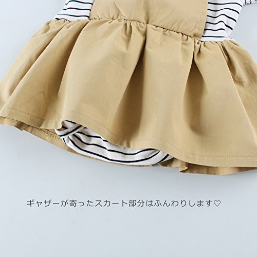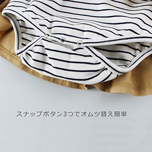 Baby Nest ベビー服 スカート付き ロンパース 長袖 ボーダー柄 女の子 赤ちゃん ワンピース カーキ 6-9M