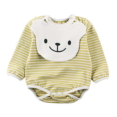 Baby Nest ベビー服 長袖ボディースーツ よだれパッド付き 取り付け可 女の子 男の子 コットン イエロー 0-3M