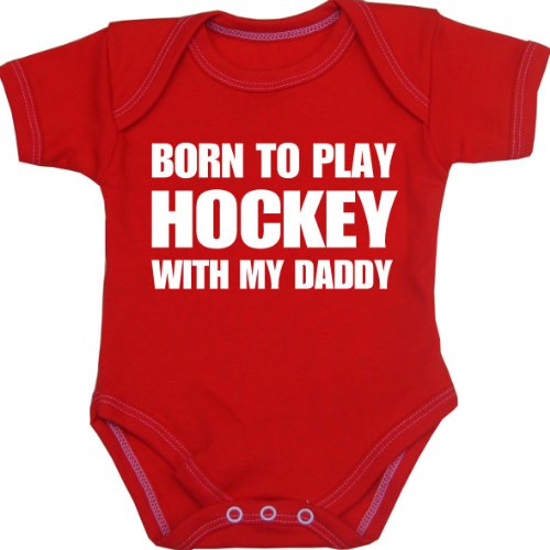 BabyPrem Baby Born to Play Hockey With My Daddyボディスーツnb-12 MTH カラー: レッド