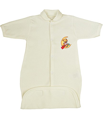 これはベビースリーピングバッグ/スリープサックを下部にフロントのファスナーとベルクロの2つの着こなしを容易にするためのものです。これは品質イギリスの衣類で、ぴったりのクリームやホワイトには、かわいいテディベア月のモチーフは前身頃に座っている。これは、綿100で、40度で洗濯機使用可。サイズは早期7.5lbまで、新生児、0 – 3ヶ月。