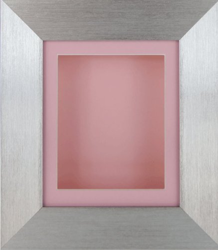 BabyRice Deepボックス表示フレームfor 2d 3d ArtオブジェクトMedal Keepsake Baby Casts 1st Bootees花Brushedシルバー/ピンクマウント/ピンクBacking