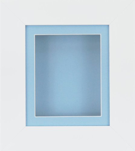 BabyRice Deepボックス表示フレームfor 2d 3d ArtオブジェクトMedal Keepsake Baby Casts 1st Bootees花ホワイト/ブルーマウント/ブルーBacking