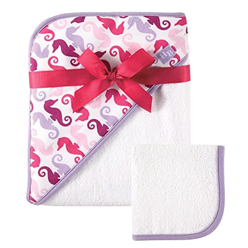 - Hudson Baby Print Woven Hooded Towel and Washcloth, Girl, Seahorse Print