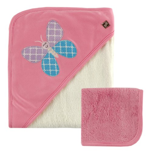 - Hudson Baby Bamboo Hooded Bath Towel and Washcloth, Pink Butterfly