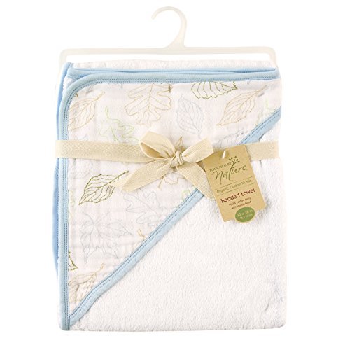 - Touched by Nature Boy's Organic Hooded Towel with Muslin Hood, Blue Leaves