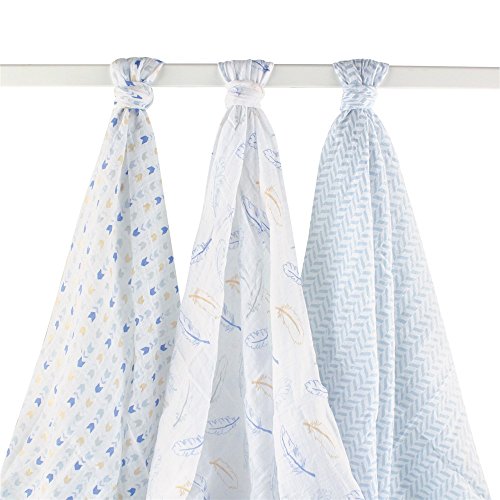 - Hudson Baby Muslin Swaddle Blankets, Blue Feathers