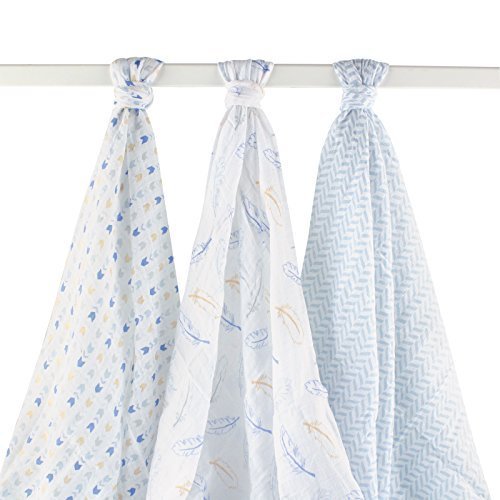 Hudson Baby Muslin Swaddle Blankets, Blue Feathers by BabyVision [並行輸入品]