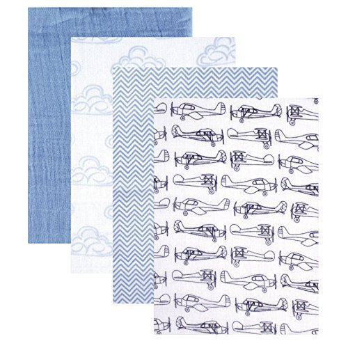 Hudson Baby 4 Piece Muslin Swaddle Blanket, Blue