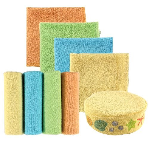 Luvable Friends 8-Pack Washcloths with Bonus Bath Sponge, Yellow Starfish