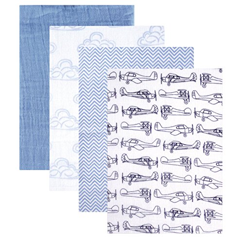 - Hudson Baby 4 Piece Muslin Swaddle Blanket, Blue