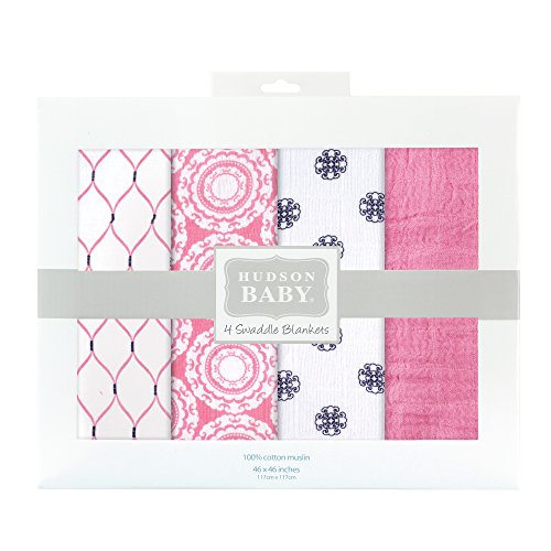 - Hudson Baby 4 Piece Muslin Swaddle Blanket, Pink Mandalas