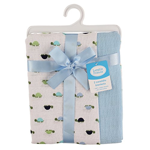 - Luvable Friends 2 Piece Muslin Swaddle Blankets, Turtles