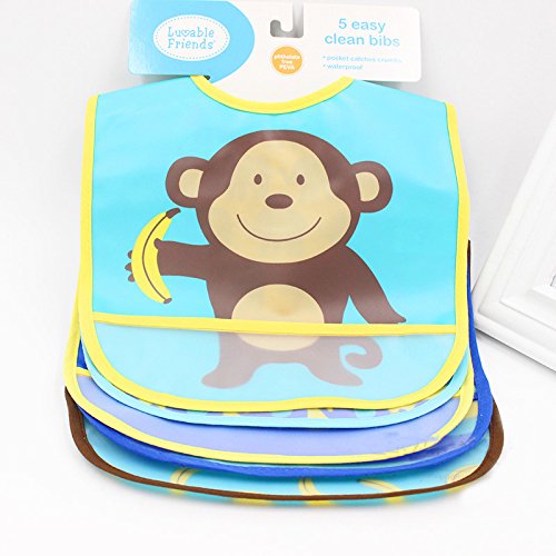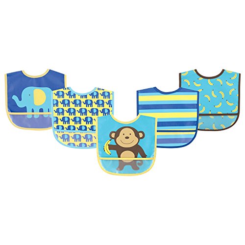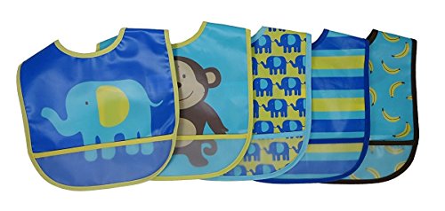 - Luvable Friends 5 Piece Safari Waterproof Bibs, Elephants and Monkeys