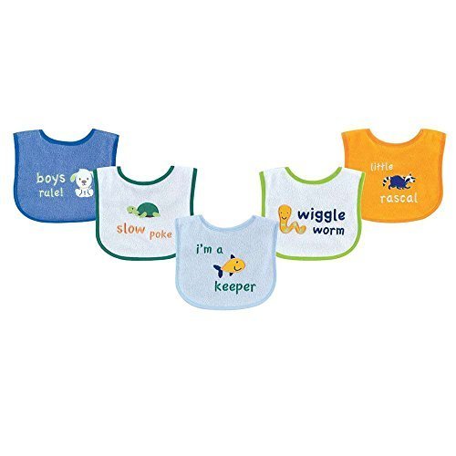 Luvable Friends Fun Sayings Bib with Peva Backing, Blue Sayings, 5 Count by BabyVision [並行輸入品]