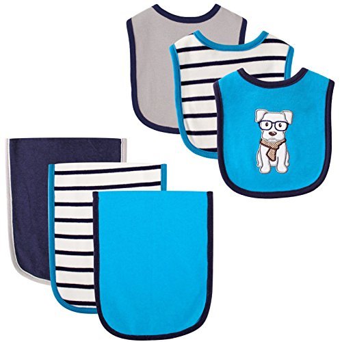 • Hudson Baby 6 Piece Bib and Burp Cloth Set, Dog